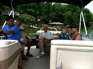 We had a pontoon boat rented for Sunday so Holden got her first cruise! It was right before her nap time so she wasn't in a very good mood, though it probably had more to do with the bulky life preserver than anything else.